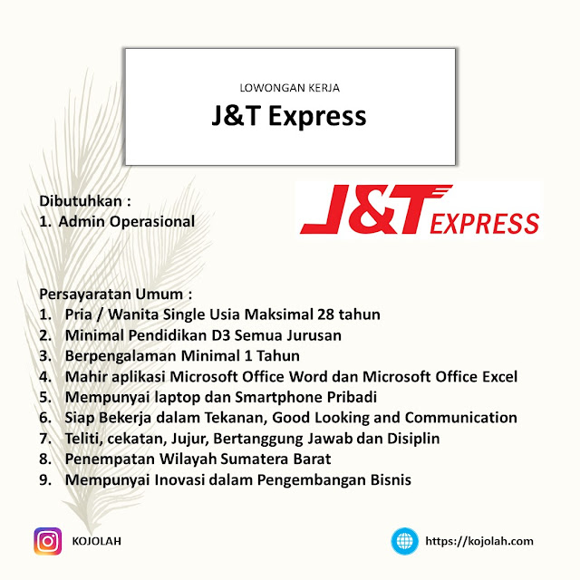 Lowongan Kerja J T Express Padang Admin Operasional Kojolah