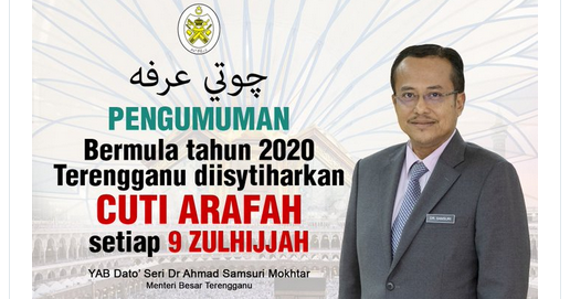 Terengganu Isytihar Cuti Umum Hari Arafah Bermula 2020 Minda Rakyat