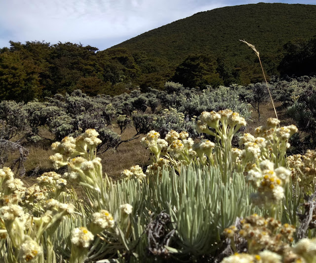 Alamku Duniaku Cerita Ku Padang Edelweiss Gunung Gede Jawa Barat Indonesia Lahan Yang Ditumbuhi Vegetasi Edelweiss Dan Pohon Santigi Yang Tumbuh Di Blok