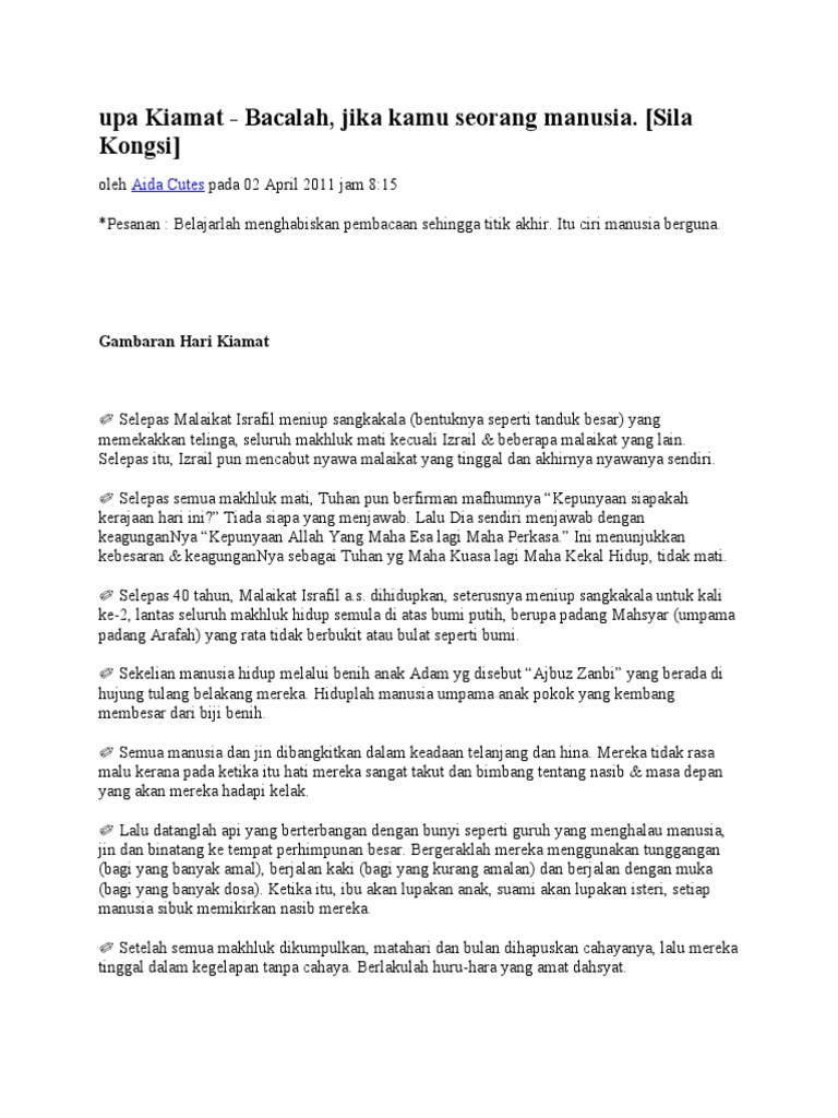 Rupa Kiamat Bacalah Wahai Sahabatku Semua Kuatkan Semangat Untuk Membacenye