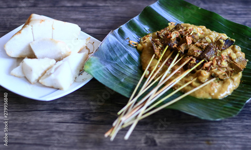 Sate Padang Or Padang Satay And Ketupat Traditional Rice Cake On Banana Leaf Wood Background Buy This Stock Photo And Explore Similar Images At Adobe Stock Adobe Stock