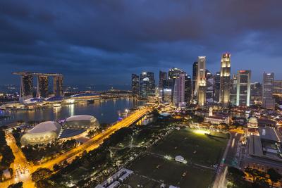 Singapore City Skyline Elevated View Above The Padang Dusk Photographic Print Walter Bibikow Art Com
