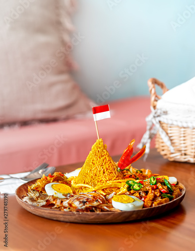 Cone Shaped Yellow Padang Rice Called Nasi Tumpeng With Indonesian National Flag On Top Of For Independence Day Celebration At 17 August Buy This Stock Photo And Explore Similar Images At