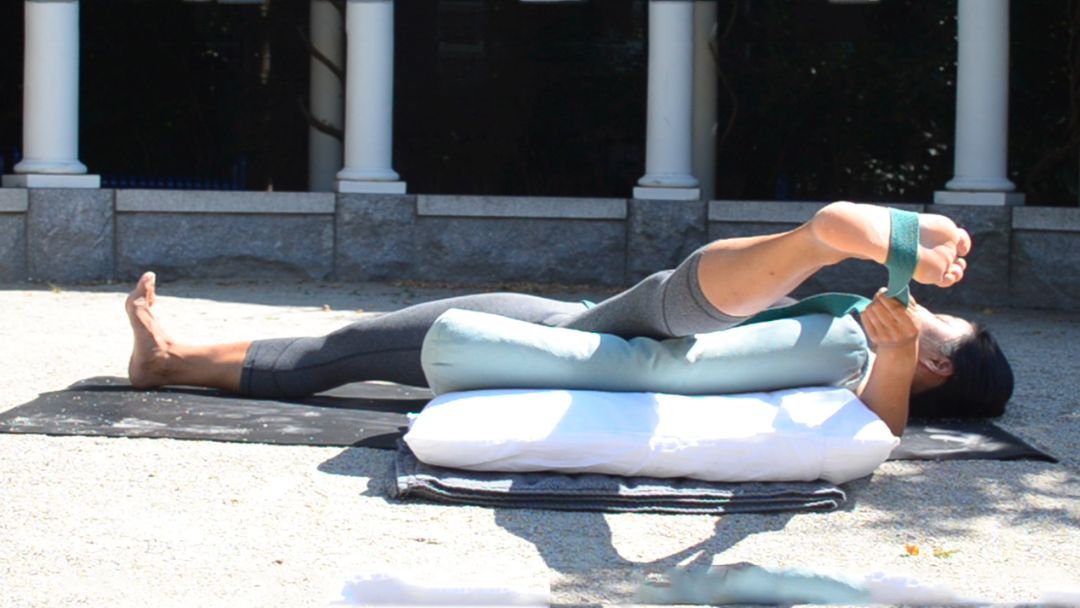 Detail Depth Eka Pada Koundinyasana 2 Is Similar In Shape To Supta Padangusthasana 2 But Taken As An Arm Ba Restorative Yoga Poses Iyengar Yoga Yoga Props
