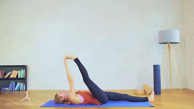 Supine Hand To Toe Pose Supta Padangusthasana Instructions Photos Yoga Basics