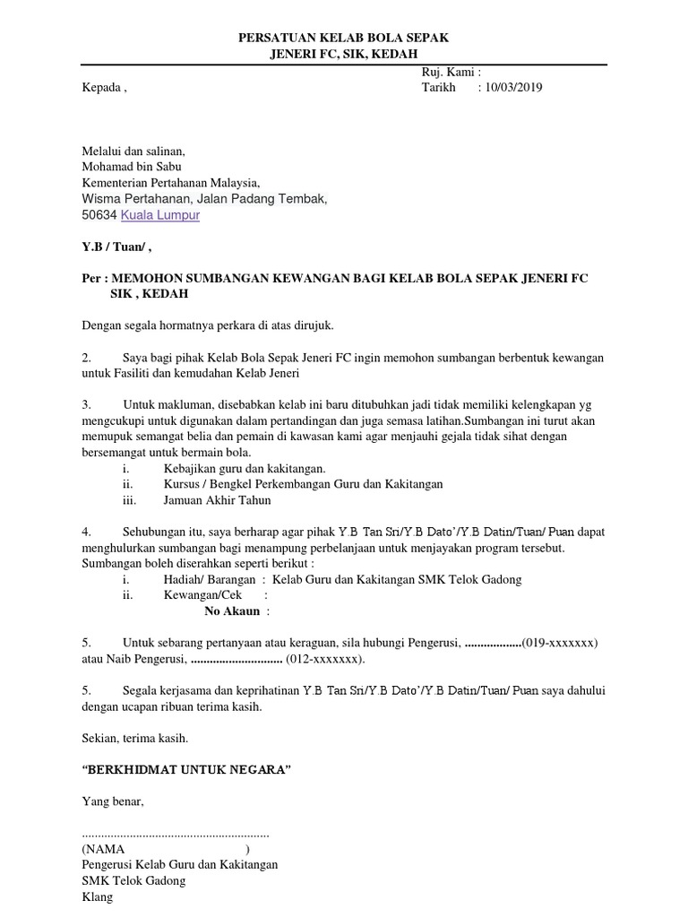 Surat Mohon Sumbangan Yb