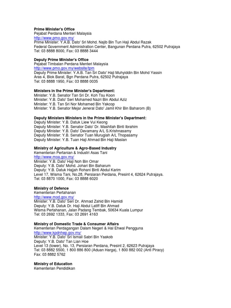 Maklumat No Tel Menteri
