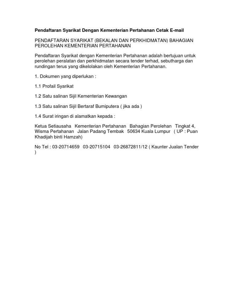 Pendaftaran Syarikat Dengan Kementerian Pertahanan Cetak E