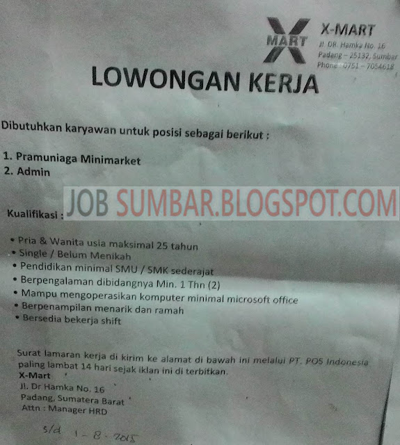 Lowongan Kerja Padang Oktober 2017 X Mart Padang Jobs Lowongan Kerja Sumbar 2020