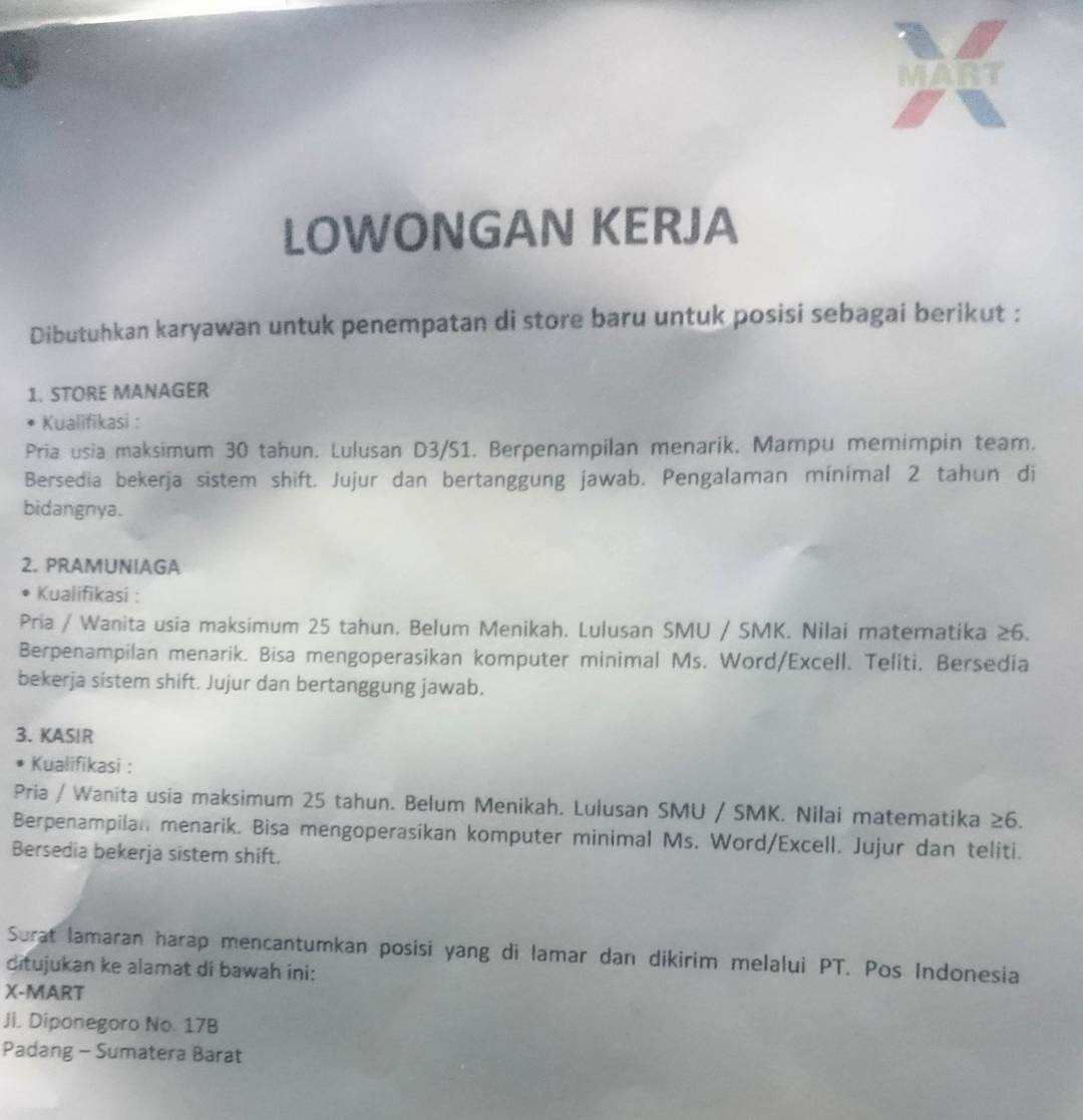 Lowongan Kerja X Mart Padang Blog Pak Pandani