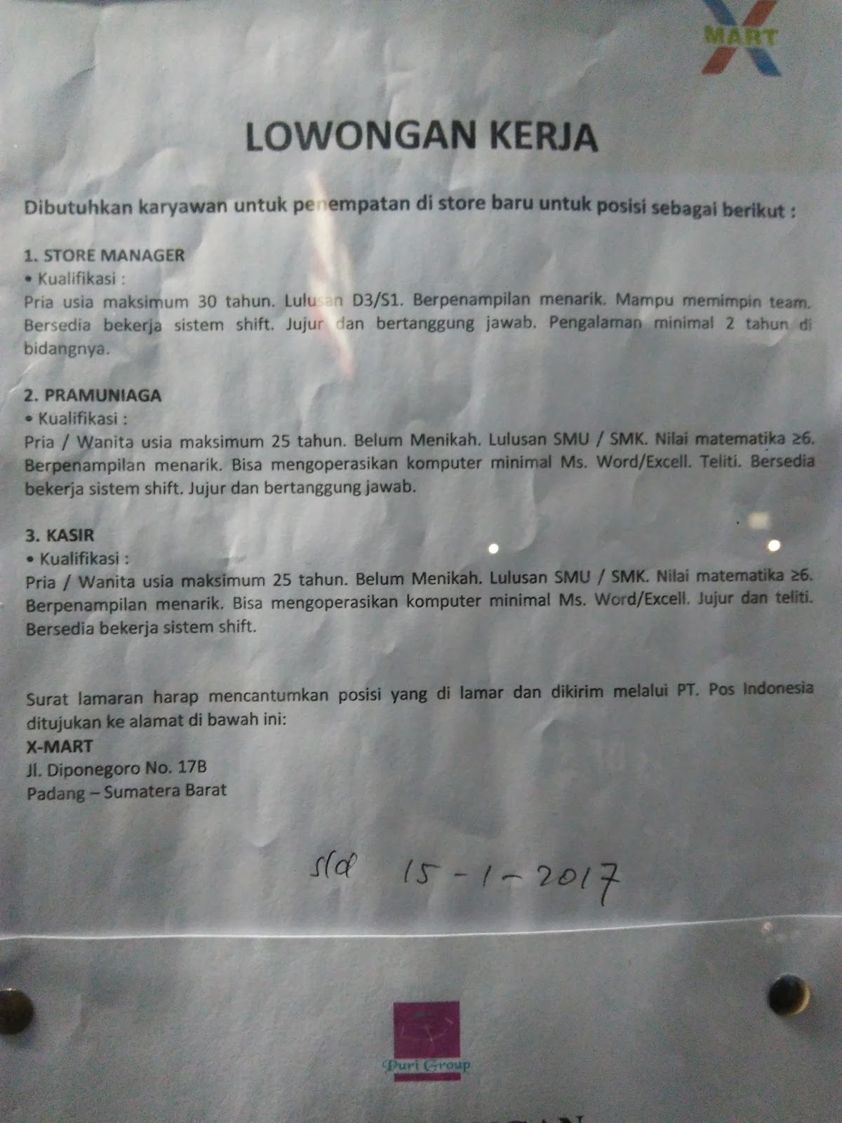 Lowongan Kerja X Mart Padang Ditutup 23 Januari 2018 Blog Pak Pandani